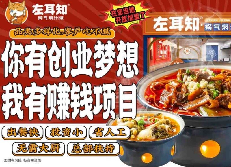 左耳知现烤焖汁饭,是杭州优溪味品牌管理有限公司倾力打造的餐饮品牌。左耳知其味左耳知其名,以受人追捧的麻辣市场趋势为主,打造互联网餐饮及传统餐饮品牌“线上+线下”结合的中国餐饮连锁品牌的理念,以一人一锅...